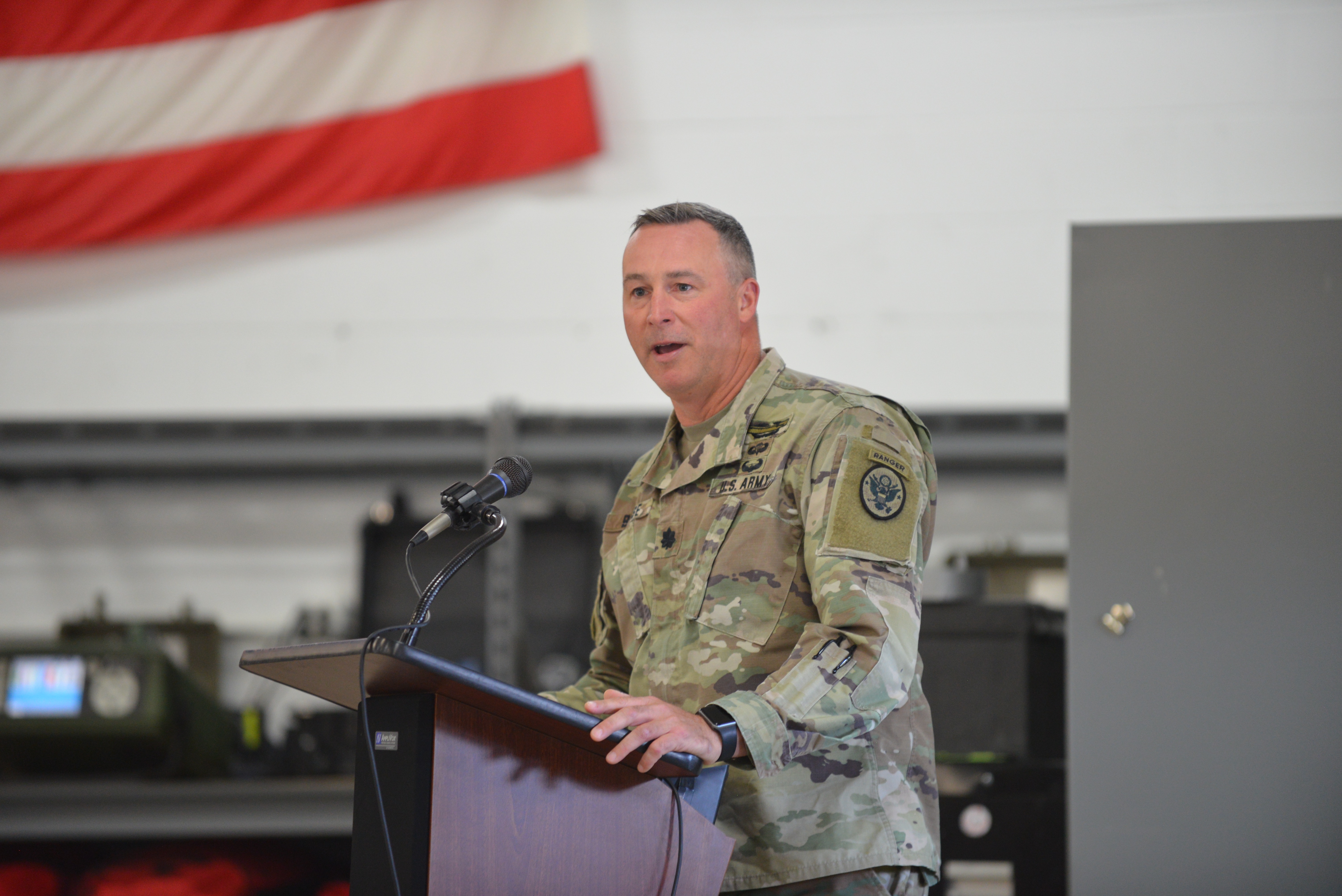 Lt. Col. Paul Bosse speaks during the change of command ceremony.