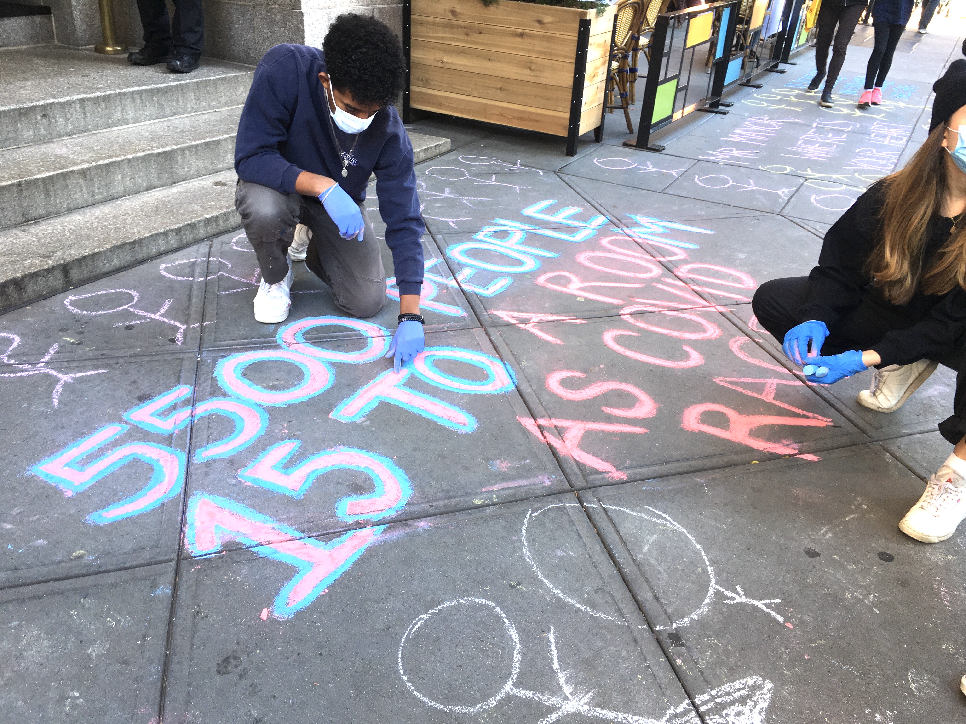 NEW YORK, NY (11/29/2020) (readMedia)-- As COVID-19 rates spike, Upper West Side Open Hearts Initiative, BLM art protest group The All Street Journal, and shelter residents protested Mayor de Blasio's decision to move the men from the Lucerne to another hotel while over 5,500 New Yorkers are still crammed in congregate shelters. While many shelter residents were moved into hotels over the summer, many more were left behind sleeping 15 to a room. Advocates drew 5,500 stick figures on the sidewalk to represent these New Yorkers apparently forgotten by the de Blasio administration as the city focuses its efforts on displacing Lucerne residents instead.