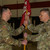 2: Capt. Kody Peckham (left) passes the company guidon to Lt. Col. Shanon Cotta, commander of the 133rd Engineer Battalion, who will then present the guidon to the incoming commander.