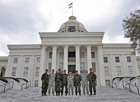 A group of Romania's Land Force visited Alabama in February as part of the program. They visited the armory that houses the 231st Military Police Battalion and exchanged information regarding military vehicles and small arms policies and procedures. Their visit was culturally enriched by a visit to several historical sites in Prattville and a tour of the Capitol building in Montgomery, providing a brief look into some of Alabama's state history.
