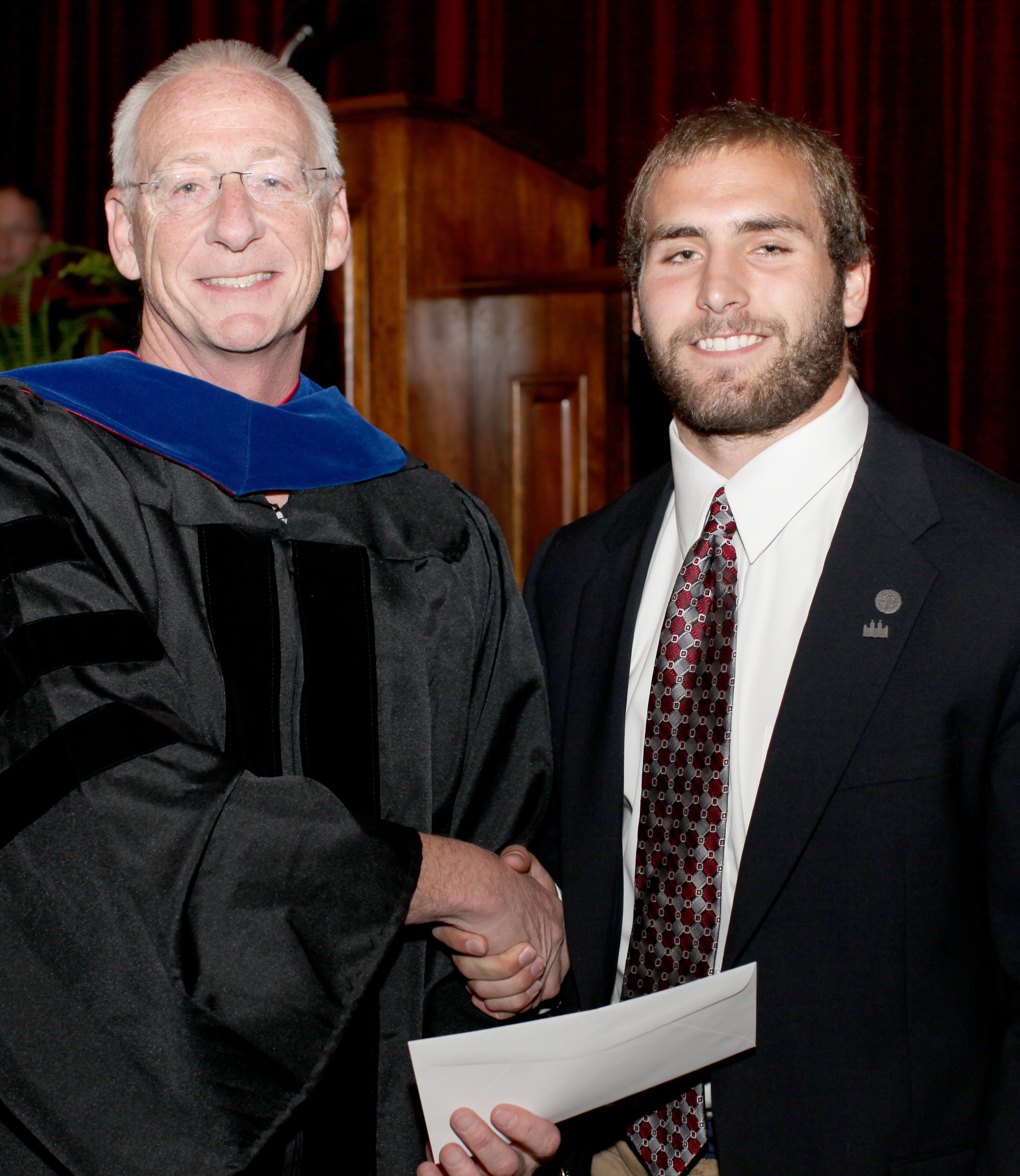 HAMPDEN-SYDNEY, VA (05/09/2012)(readMedia)-- At Final Convocation on April 26, Hampden-Sydney College junior Alex Tyler Price received the Selden-Franke Award in Mathematics, presented by Dr. Paul F. Hemler, Associate Professor of Mathematics and Computer Science. Honoring Colonel Dudley Bird Selden and Colonel Gustav Adolphus Franke, Jr., both of whom served the College as math professors, this award is presented to the outstanding junior mathematician.