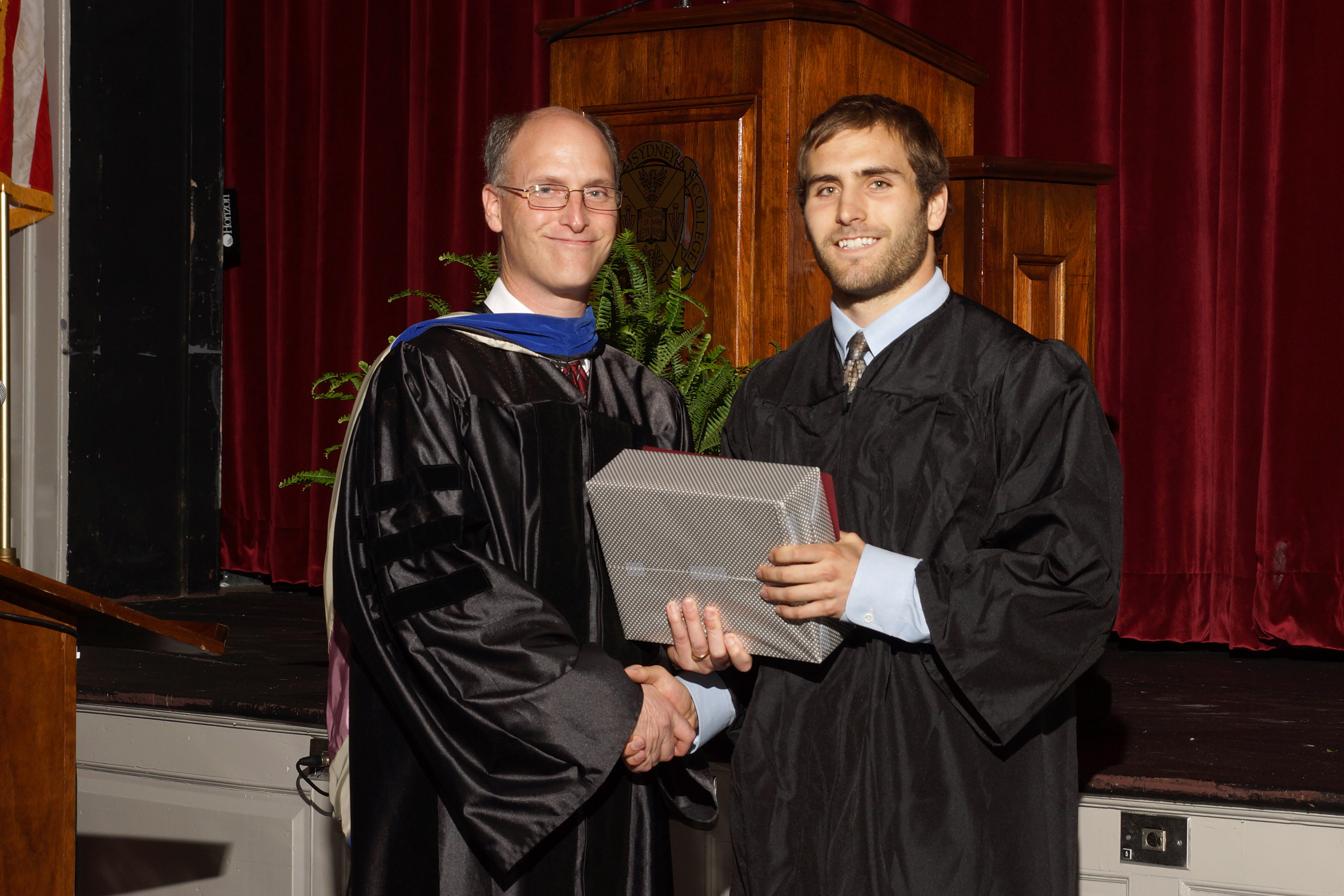 HAMPDEN-SYDNEY, VA (05/10/2013)(readMedia)-- At Final Convocation on April 25, Hampden-Sydney College senior Alex Tyler Price received both the Weyland Thomas Joyner Physics Award, presented by Dr. Walter C. McDermott III, Associate Professor of Physics and Astronomy, and the William C. Chewning, Jr. Award, presented by Dr. David S. Pelland, Associate Professor of Mathematics and Computer Science.