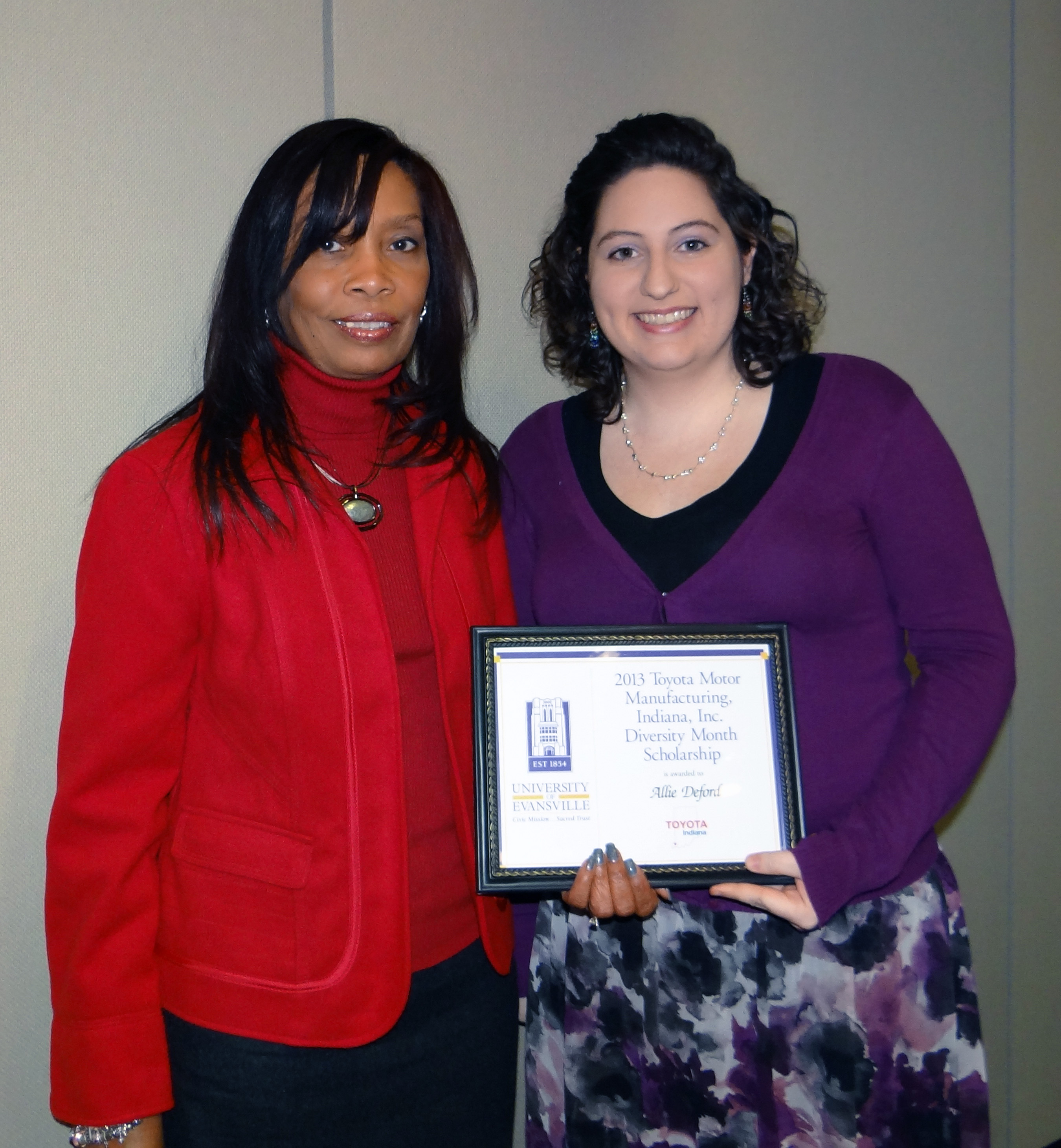 EVANSVILLE, IN (01/22/2013)(readMedia)-- University of Evansville junior Allie Deford, a computer science major from Lafayette, Indiana, has won the Toyota Motor Manufacturing, Indiana, Inc. Diversity Month Scholarship.