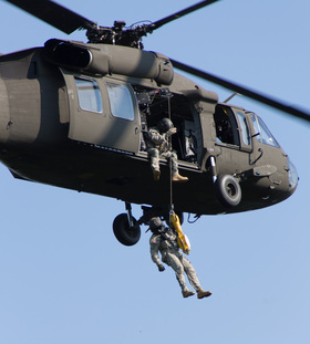 Each Army National Guard helicopter is crewed by four or five Soldiers, a pilot and co-pilot, one or two highly trained flight medics, and a crew-chief.