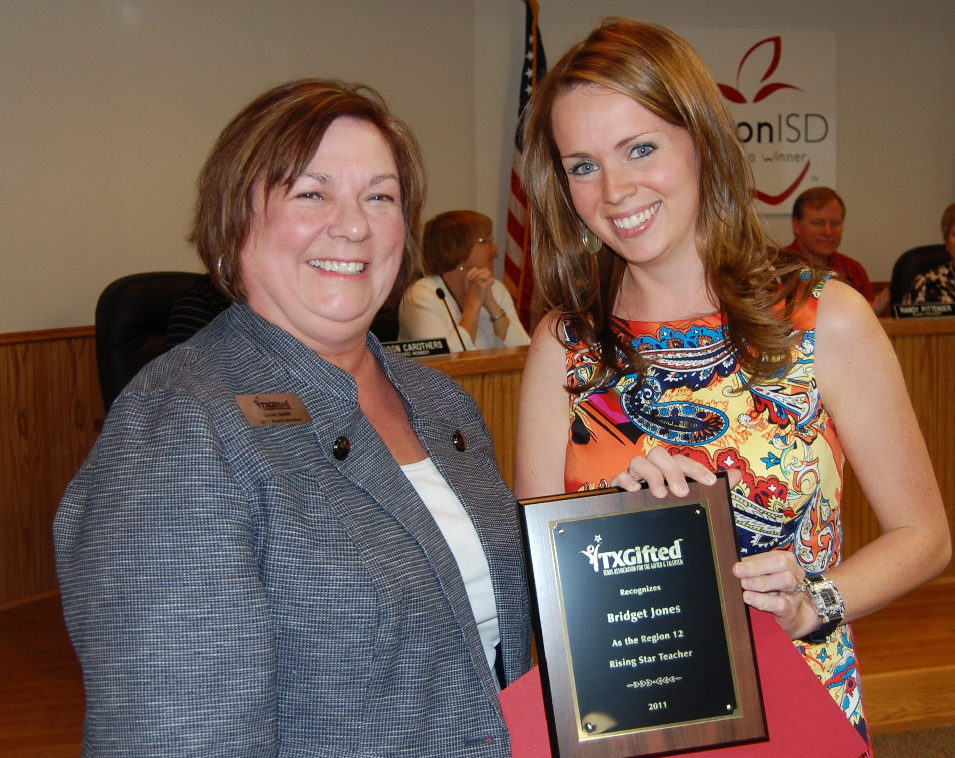 JJ Colburn, executive director for TAGT, said Jones received the award because she demonstrated outstanding promise in: working toward gifted certification and being engaged in advanced professional development; using instructional strategies appropriate for gifted students; addressing the affective needs of gifted students; and affiliating with professional gifted organizations.