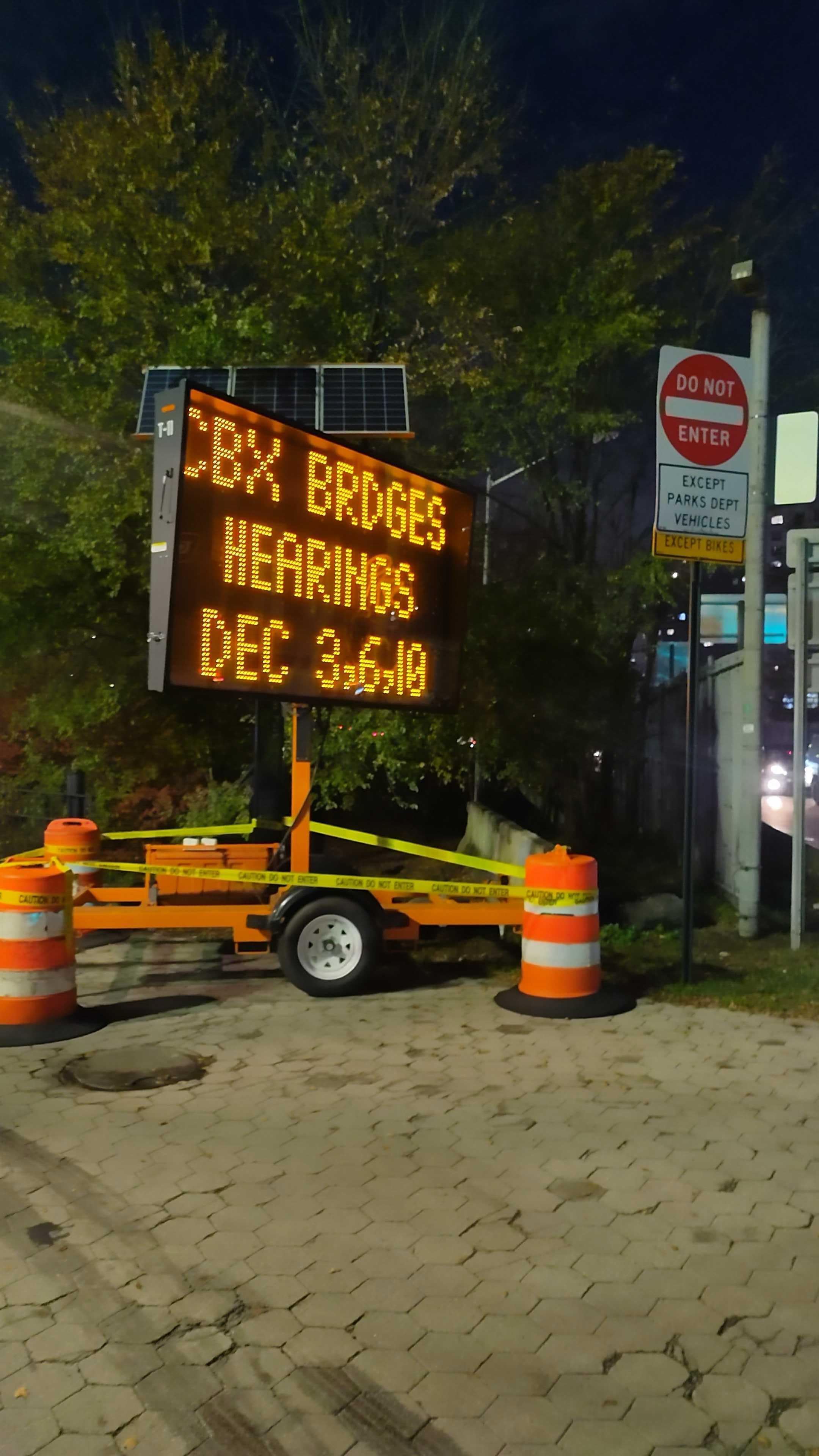 View photos of NYSDOT's Cross Bronx engagement strategy below featuring makeshift digital road signs directing Bronxites to the agency's scheduled hearings.