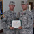 Command Sgt. Maj. Anthony McCormick (left) and Lt. Col. Corey Wise (right) holding the gift presented to Wise by the 2-123rd Field Artillery Battalion for meritorious service. (U.S. Army photo by Lt.