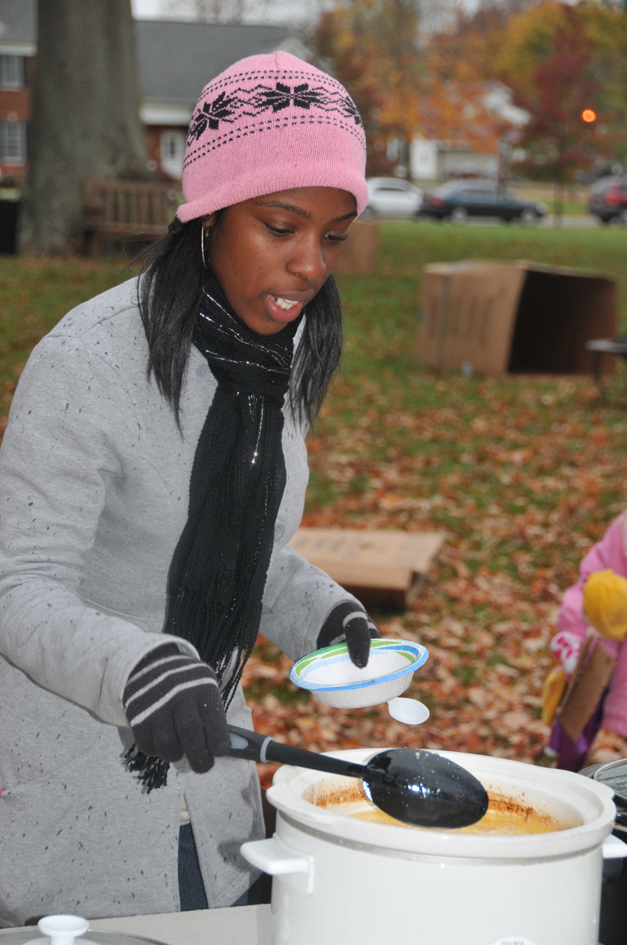 Monique Powell, a sophomore of Elizabethtown, Ky., goes through the soup line at Campbellsville University’s Cardboard Nation. Photo by Ellie McKinley