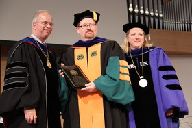 Williams, who has been employed by Campbellsville University since 2010, was presented the award by Dr. Michael V. Carter, president of Campbellsville University, and Dr. Donna Hedgepath, vice president for academic affairs, at chapel.