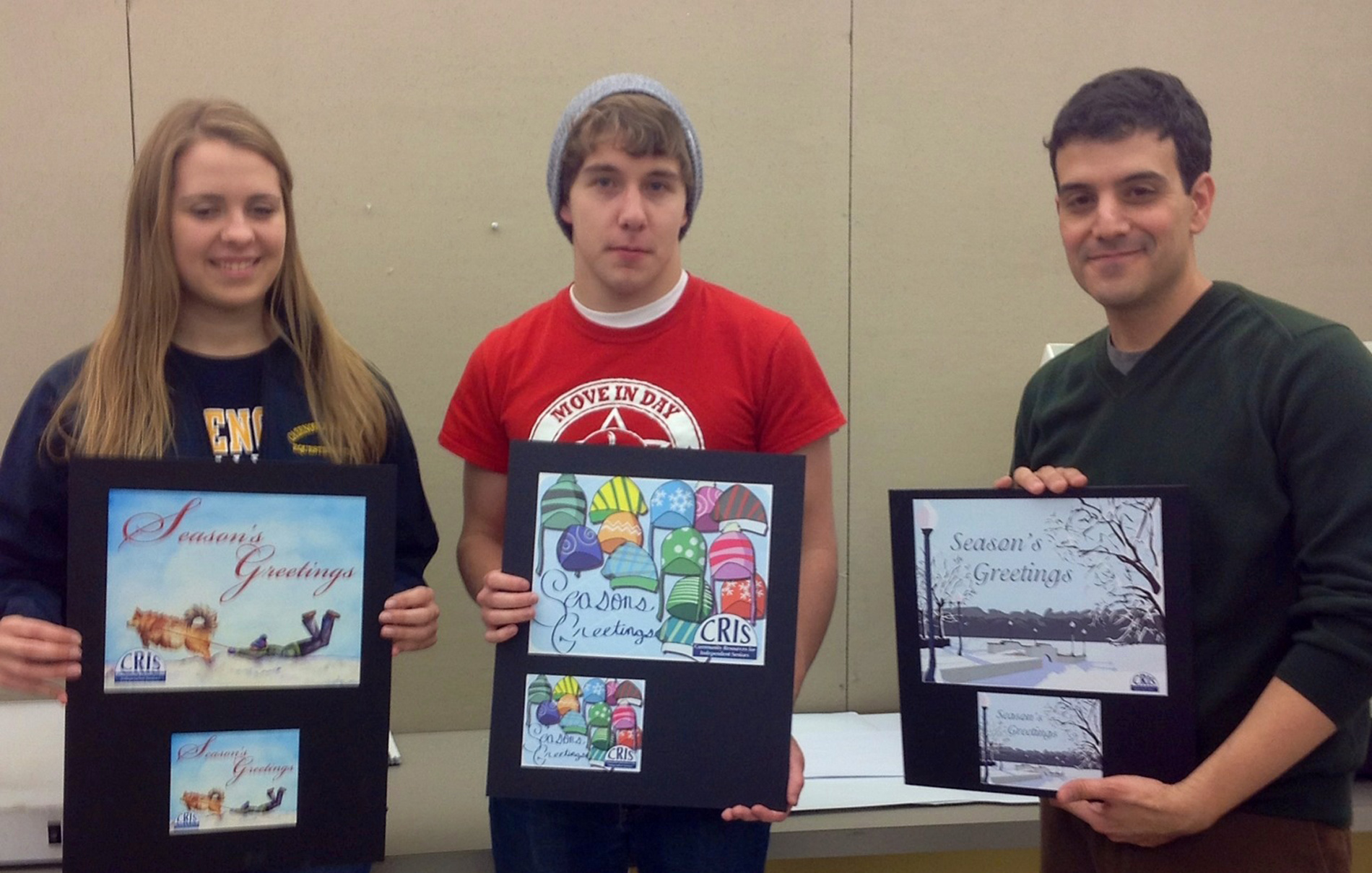 CRIS Director Bonnie Slocum said, "We sincerely appreciate the willingness of Laurie Selleck [professor of visual communications] to suggest this project to Dan Salamida for the Illustration students. The CRIS Board thoroughly enjoyed reviewing the submissions. Three cards will be produced from designs by Paul Roberts, Courtenay Chambers and Katie McCutcheon, and the winning students received Caz Bucks certificates to spend in Cazenovia stores."