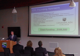 John Pelletier of Stowe, Director of the Center for Financial Literacy at Champlain College, announced the details of the new center which is designed to promote and develop financial literacy skills in K-12 students, college students, teachers (K-12 and college) and adults. The Center will also advocate for more financial education opportunities at the local, state and national level.