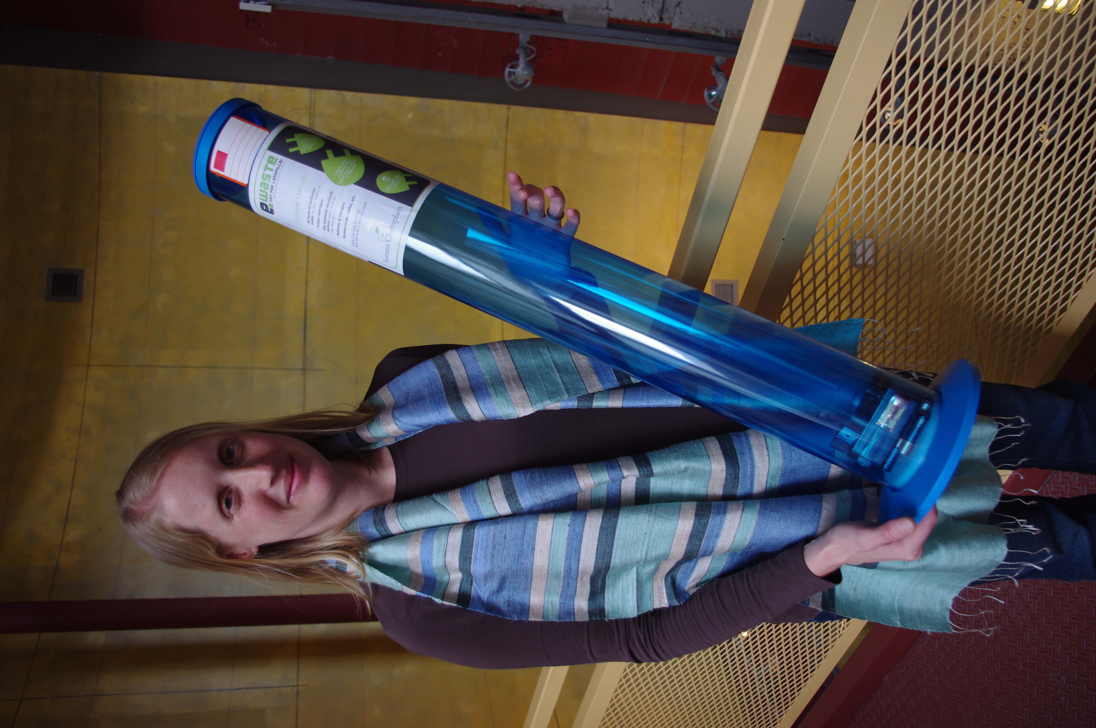 According to Sustainability Coordinator Christina Erickson (at right), while Champlain College has a good record of repurposing and recycling out dated or unusable electronics like computers, printers and other devices, some of the smaller personal electronic items were being overlooked and often just tossed in the trash.