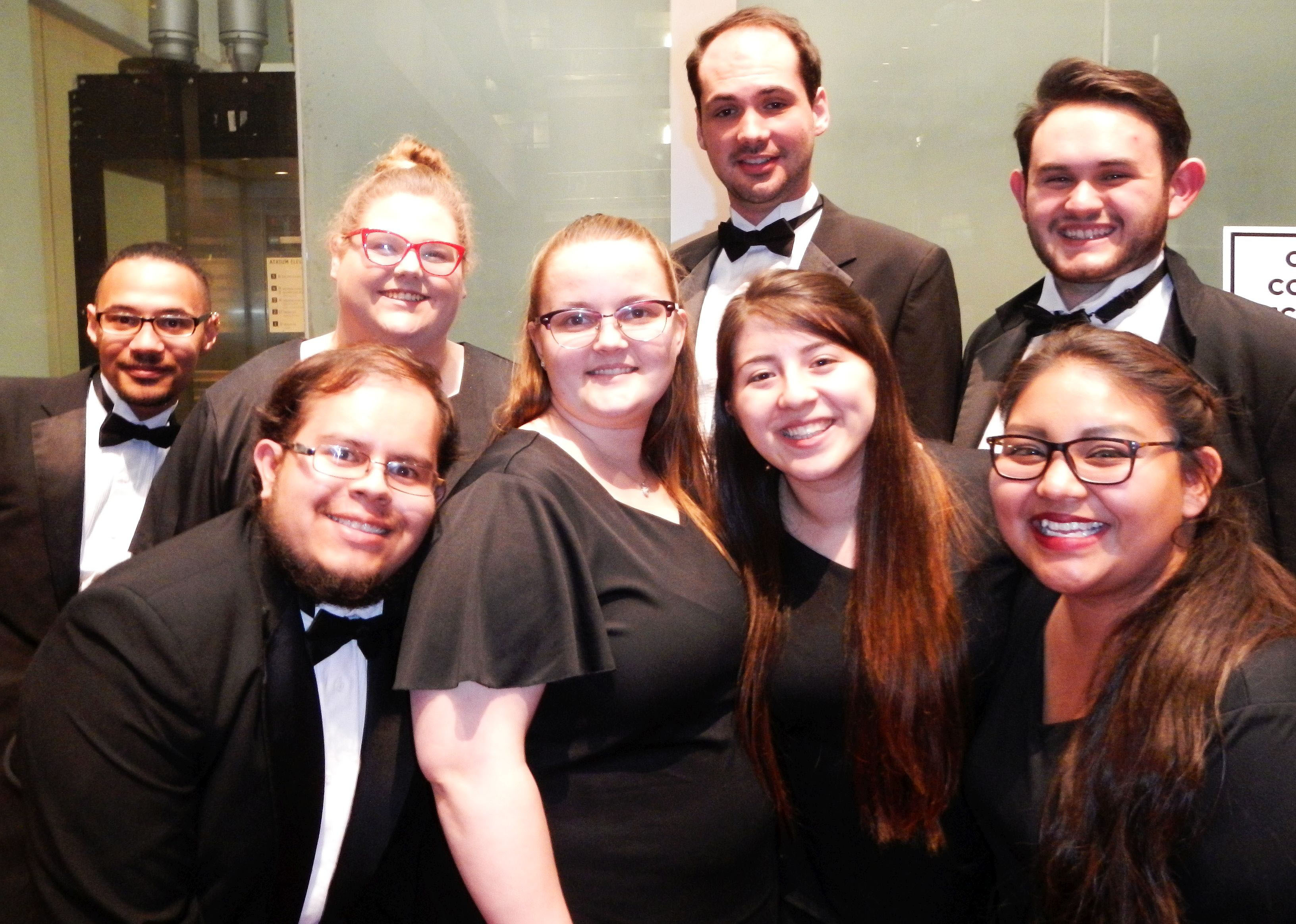 The following students were selected for the 2018 SWACDA Honor Choir, conducted by Maria Guinand of Venezuela: Lindsey Bartlett, a junior majoring in vocal performance, Zane Burden, a senior majoring in choral music education, Devin DeVargas, a junior majoring in vocal performance, Juan Espino, a senior majoring in vocal performance, Thomas Fisher, a senior majoring in choral music education, Lauren Hutchison, a senior majoring in choral music education, Dalia Melendez, a junior majoring in vocal performance, and Annabelle Rangel a junior majoring in choral music education.