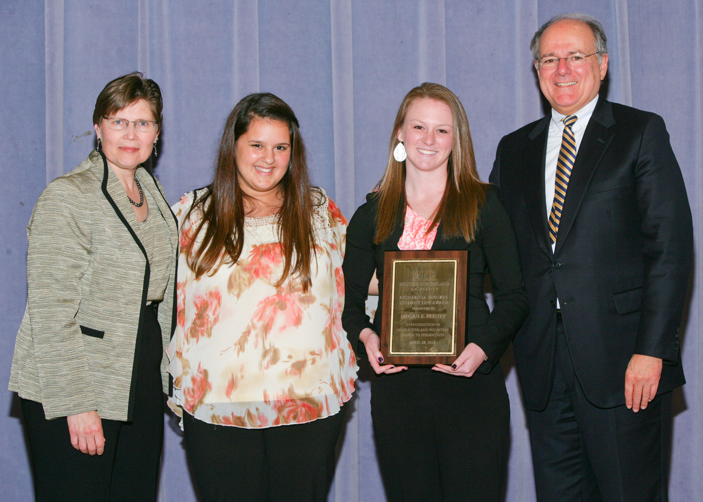 The Richard M. DiRuzza Student Life Award is given in recognition of volunteer service to the University and to a student who has had a direct impact on improving the quality of student life. The award is named in honor of former Vice President for Student Affairs and Dean of Students Richard M. DiRuzza, who devoted 18 years of service to Western New England. The naming recognizes DiRuzza's support of underclassmen by helping them to become more engaged and involved in the University.