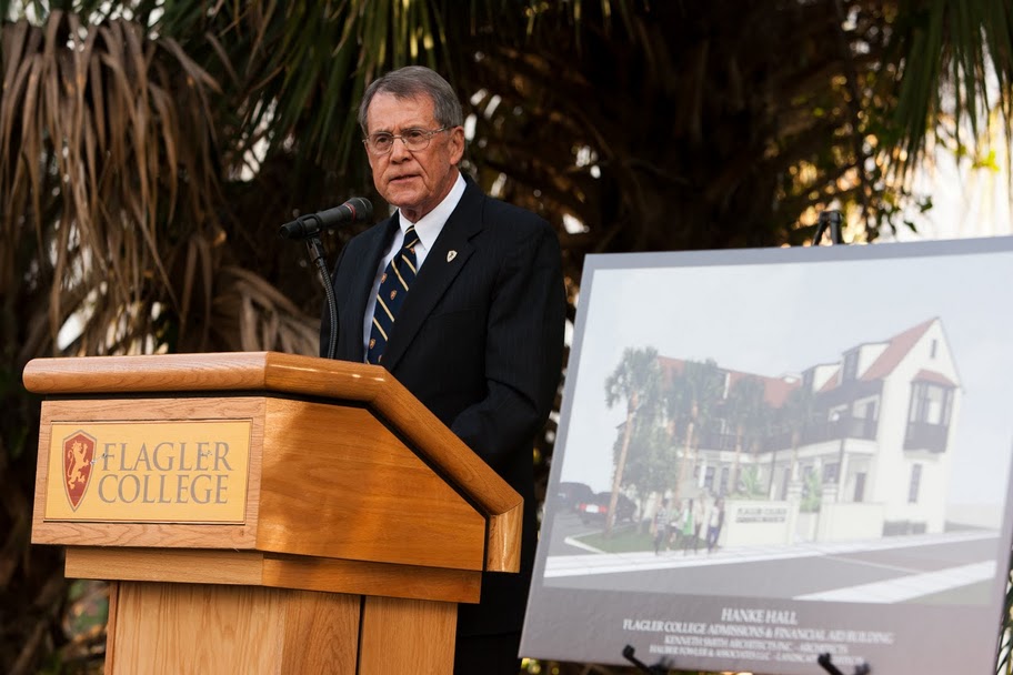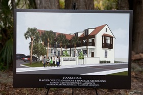 Flagler College President William T. Abare, Jr., Ed.D., joined faculty and the Board of Trustees on Oct. 26 to break ground on Hanke Hall, which will be located on Cordova Street.