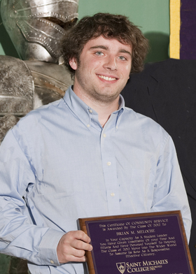 Graduate Brian Meloche of Charlton, MA, receives Community Service Award at Saint Michael's College