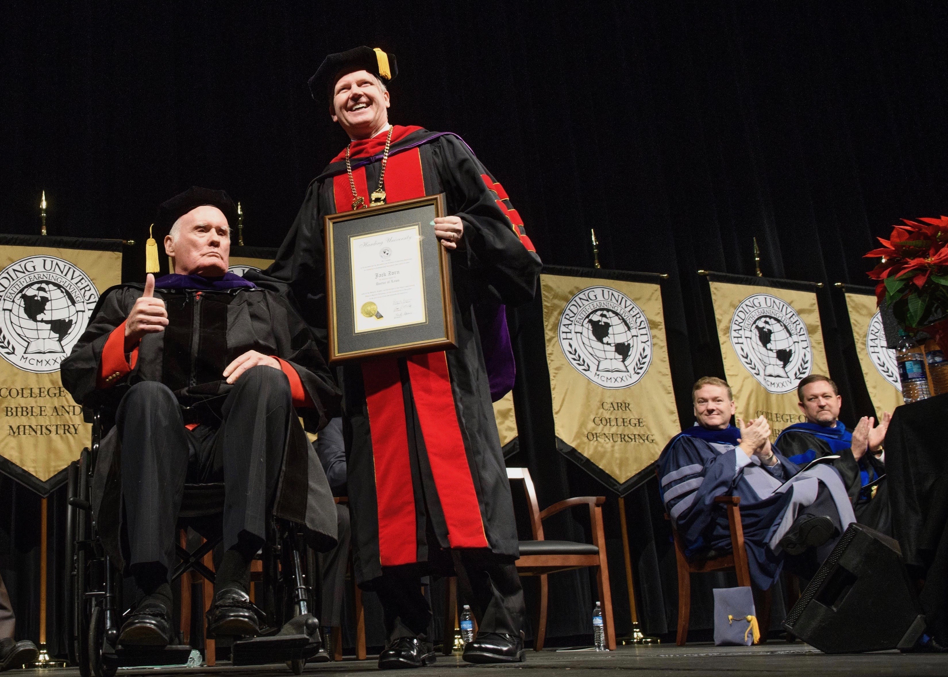 SEARCY, AR (12/18/2017) Lads to Leaders founder Jack Zorn was awarded an honorary Doctorate of Laws degree from Harding University for his contributions to the development of Christian leaders through his groundbreaking work with Lads to Leaders and Leaderettes. The degree was conferred during the university's fall commencement ceremonies on Saturday, Dec. 16.