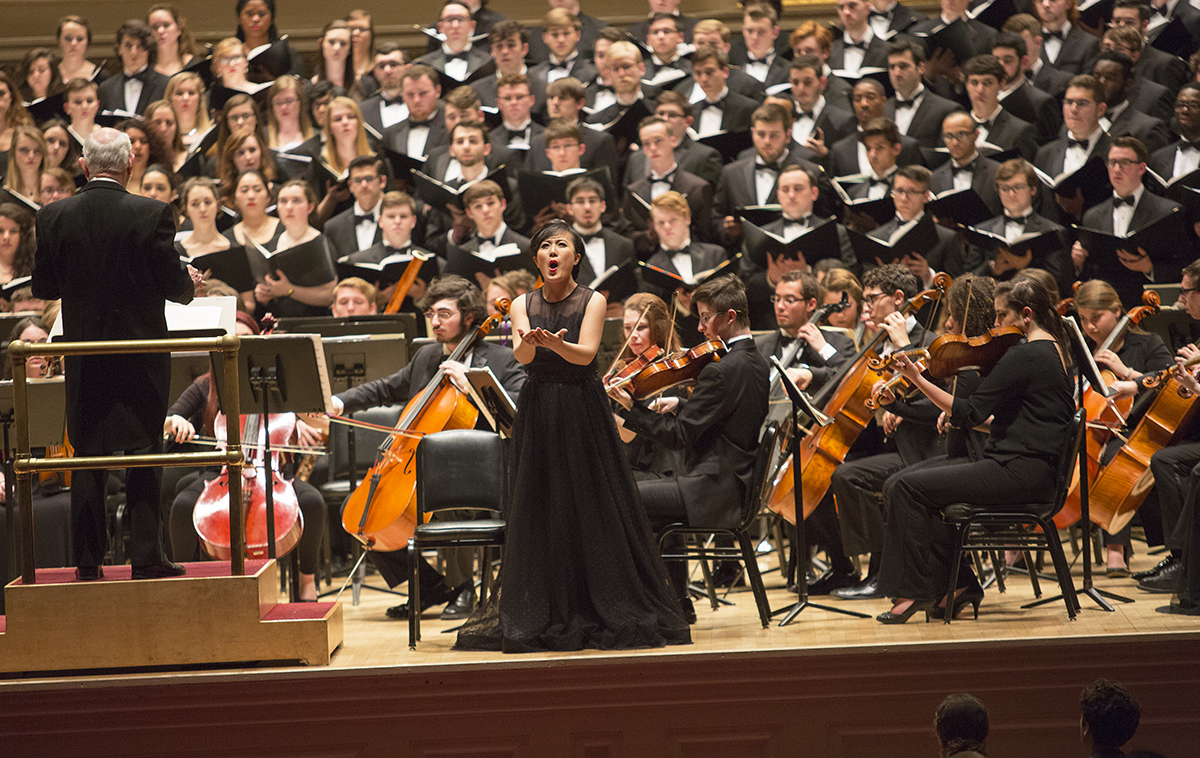 Soprano Fei Ma ’17, a graduate student at The Crane School of Music, sings the “Pie Jesu” solo movement from Fauré’s “Requiem,” in her Carnegie Hall debut (Photo: Jason Hunter).