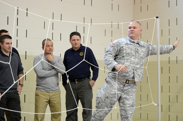 SPRINGFIELD, IL (10/10/2014)(readMedia)-- SPRINGFIELD, Ill. – Guardsmen with the Illinois National Guard (ILNG) Counterdrug Task Force conducted a team-building exercise toward the end of a weeklong leadership training course for approximately 60 Illinois State Troopers at the Illinois Military Academy on Camp Lincoln in Springfield, Illinois, Oct. 9.