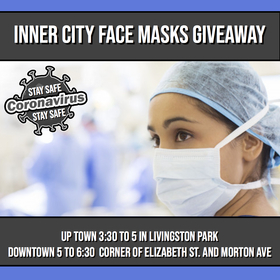 Friday May 22 at 3:30 P.M. to 5:00 P.M. in Livingston Park Joyce Love will Join Pastor Charlie and volunteers to hand out face masks to anyone in need.