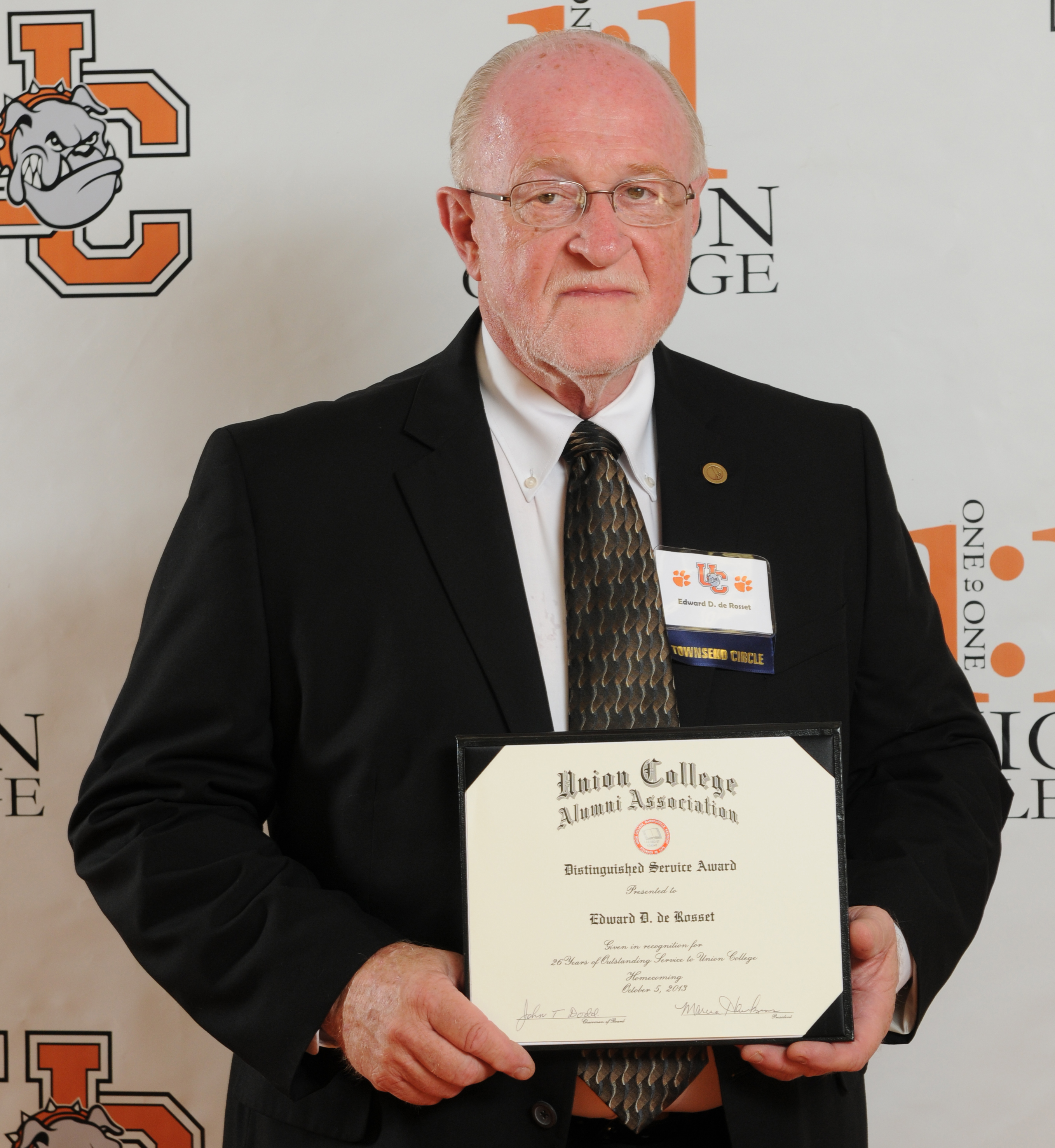 De Rosset's giving nature and willingness to teach about service by doing rather than telling impacted the lives of not only Union students, but of community members also. Whether he was taking pictures of an event on campus, or out in the community with a hammer, he was and is always ready to serve his community. This willingness to serve is evidenced by the Leadership Tri-County William D. Hacker, M.D., Leader of the Year award he won in 2010.