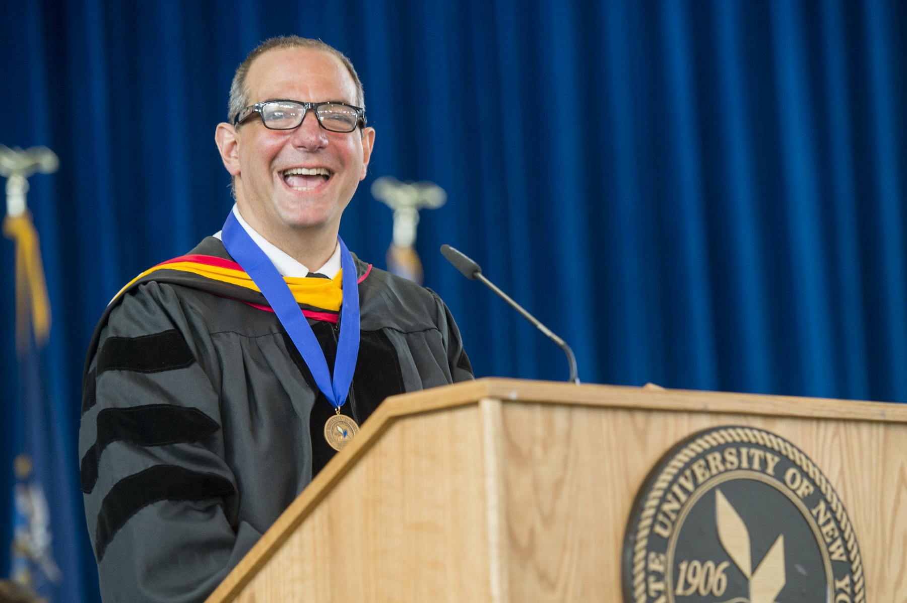 Associate Professor of Mathematics Daniel J. Gagliardi addresses the audience at SUNY Canton’s Commencement after receiving the Distinguished Faculty award.