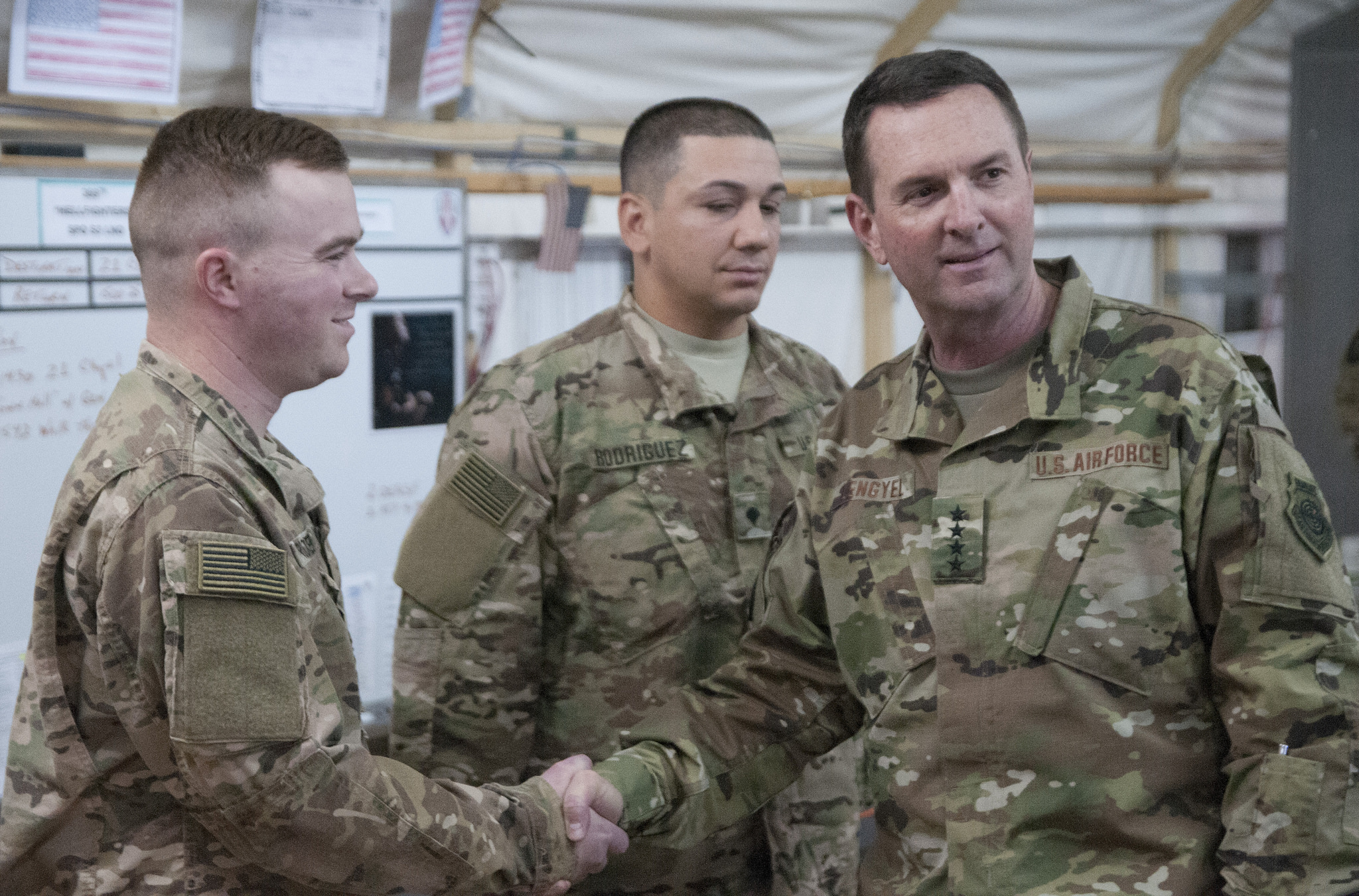 Rocker, received a recognition coin from Lengyel during his Nov. 25, 2016 visit to the unit's base in Camp Arifjan. Military leaders present personal coins to troops to recognize them for outstanding performance.