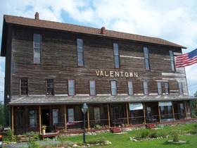 Built in 1879, Valentown Hall appears unique in New York State and an early national example of an establishment with individual retail spaces within a common interior core design, enabling consumers to visit all shops once inside. Originally, the three-story wood-frame building offered a general store, a cobbler's shop and other businesses on the first floor, service spaces on the second floor, and a ballroom on the top floor. However, a much-anticipated railroad line failed to reach Victor, and Levi Valentine's visionary project went into foreclosure in 1892.