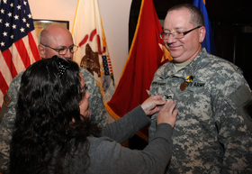 U.S. Army photo by Sgt. Michael Camacho, Illinois National Guard Public Affairs / Debby Schweickert pins Joseph Schweickert of Peoria, director of the human resource office with Joint Forces Headquarters Illinois National Guard, with the rank of colonel Dec. 20 at the Illinois State Military Museum in Springfield.