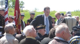 HAUPPAUGE, NY (05/19/2008)(readMedia)-- Iraq War Veteran and endorsed Republican Congressional Candidate, Lee Zeldin (center), speaks with local Veterans before the start of Suffolk County’s Armed Forces Day Ceremony at Armed Forces Plaza.