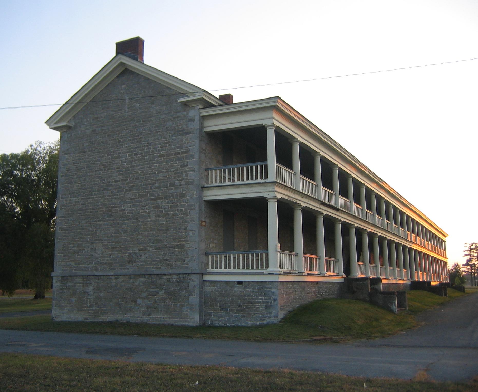 Constructed in 1838, this is the oldest building at the former Plattsburgh Air Force Base. Listed on the National Register of Historic Places in 1971, it illustrates the longstanding military presence in New York's North Country between 1812 and 1995. The building boasts massive stone walls, heavy timber framing, and a two-story columned porch running the full length of the north façade. With views of Valcour Island, Cumberland Head, Grand Isle and the Green Mountains of Vermont, the building conveys the central role that military activities played in the history of the Champlain Valley.
