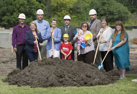 Norrell's son Kristofer, 7, brought his trusty sidekick, a stuffed animal aptly named Penguin, to the groundbreaking ceremony, so that he could help move the first tiny shovelful of dirt. Joining him to represent the children who will benefit from the center was eight-month-old Raelynn Gushea, who also happens to be Moulton's granddaughter.