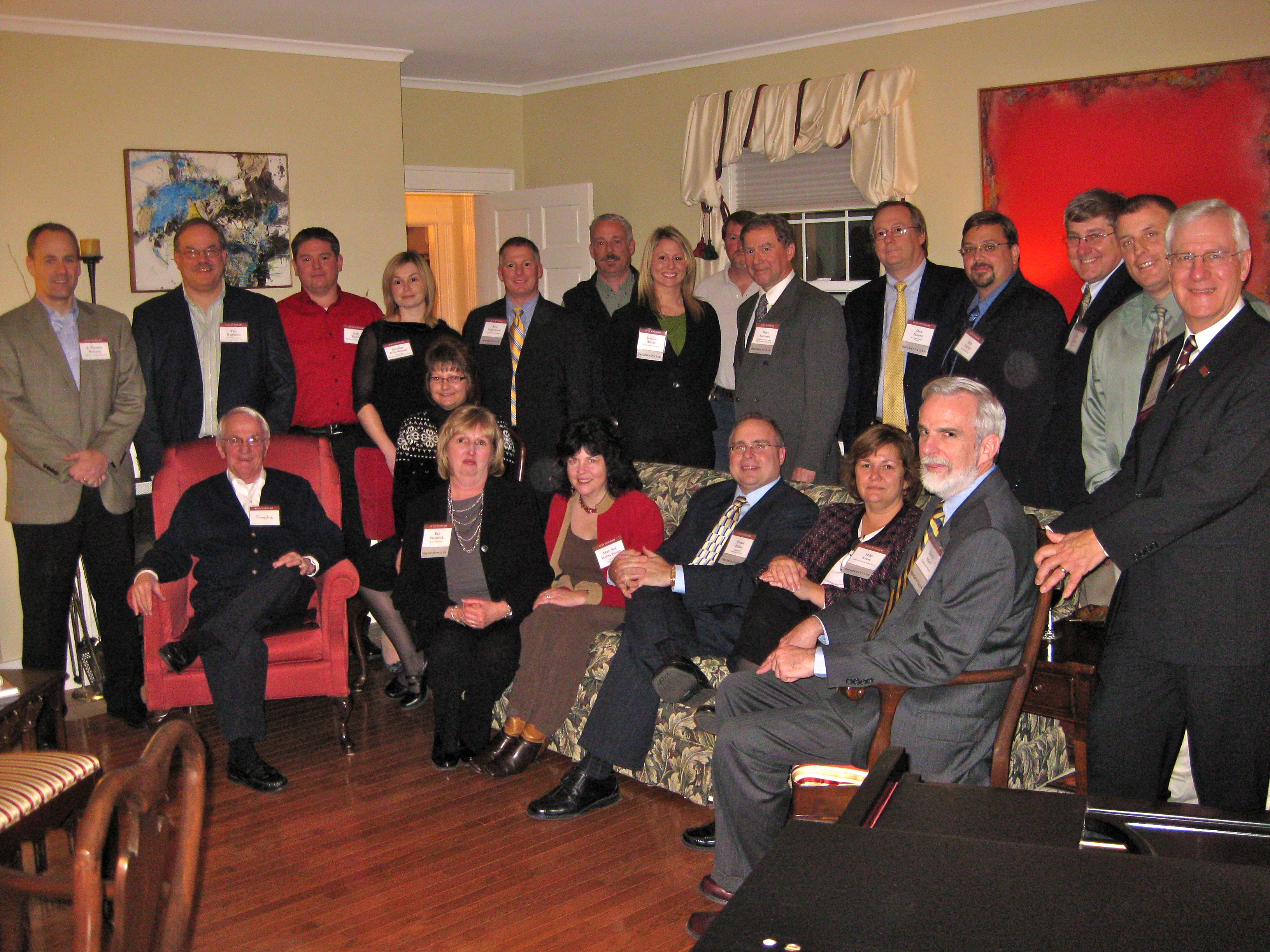 SUNY Potsdam President Dr. John F. Schwaller and his wife Anne recently hosted an event on Nov. 18 at their home to show their appreciation for 26 local business donors as well as their College faculty and staff liaisons. Dr. Schwaller welcomed the guests and thanked them for all that they do to support SUNY Potsdam.