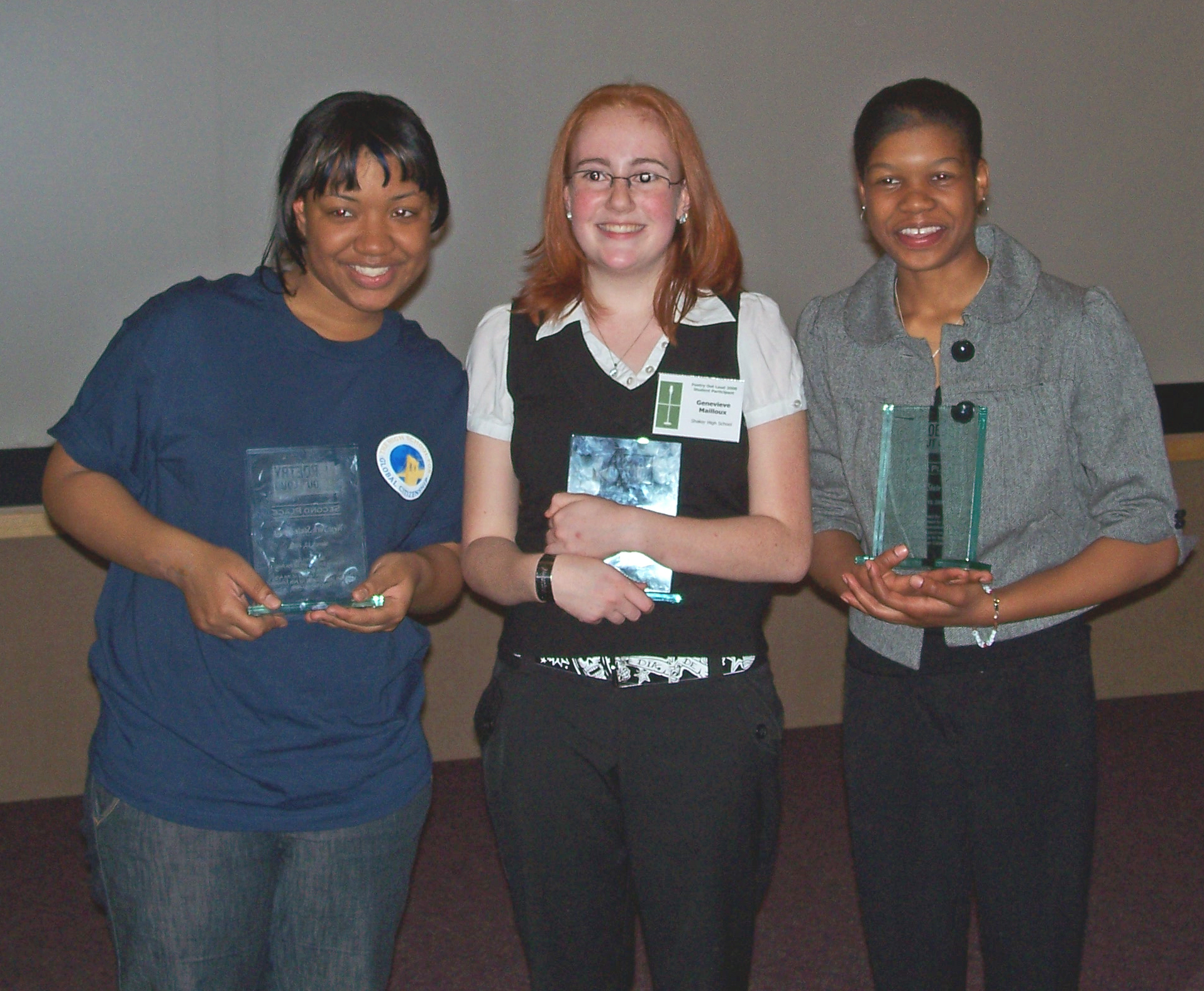 ALBANY, NY (03/17/2008)(readMedia)-- Genevieve Mailloux, a Shaker High School student from the Capital Region, took first place in the New York State Poetry Out Loud: National Recitation Contest, held March 13 at the New York State Museum. After successful wins in Shaker High School’s English classroom and school-wide competitions, she graduated to the state-level event to perform her winning recitations of Possible Answers to Prayer by Scott Cairns and Ode on the Death of a Favourite Cat Drowned in a Tub of Goldfishes by Thomas Gray. She was coached to the top by Shaker High School English teacher Maureen Livingston.