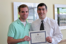 Photo Caption: Sixteen members of The University of Scranton Class of 2010 graduated from the Jesuit university's prestigious Honors Program. Pictured from left are: Honors Program graduate Timothy Smilnak, Binghamton, and Joseph Kraus, Ph.D., associate professor of English and theatre and director of the Honors Program at The University of Scranton.