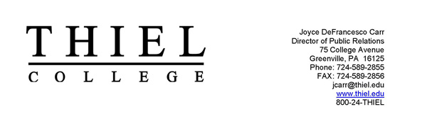 Thiel College is a liberal arts, sciences and professional studies institution located in Greenville, Pa., that provides a great balance of academic challenge, personal and social involvement, and exceptional value to its 1,100 students. For more information about Thiel College, visit www.thiel.edu or call 800-24-THIEL.