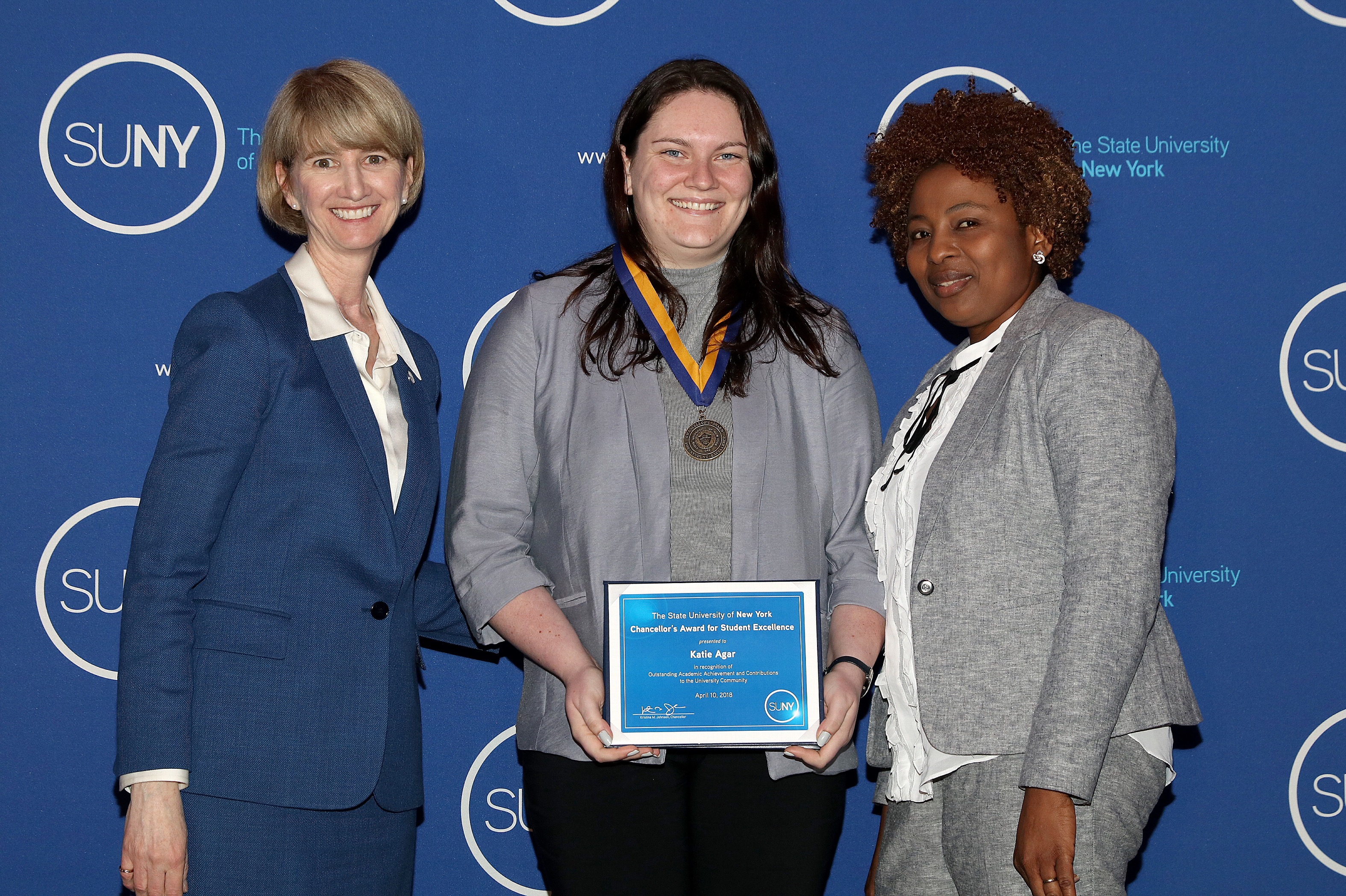 POTSDAM, NY (04/17/2018) (readMedia)-- Two outstanding SUNY Potsdam students were recently among those honored with the 2018 Chancellor's Award for Student Excellence. Chancellor Kristina M. Johnson presented the awards to 249 students in a ceremony at the Albany Capitol Center last week.