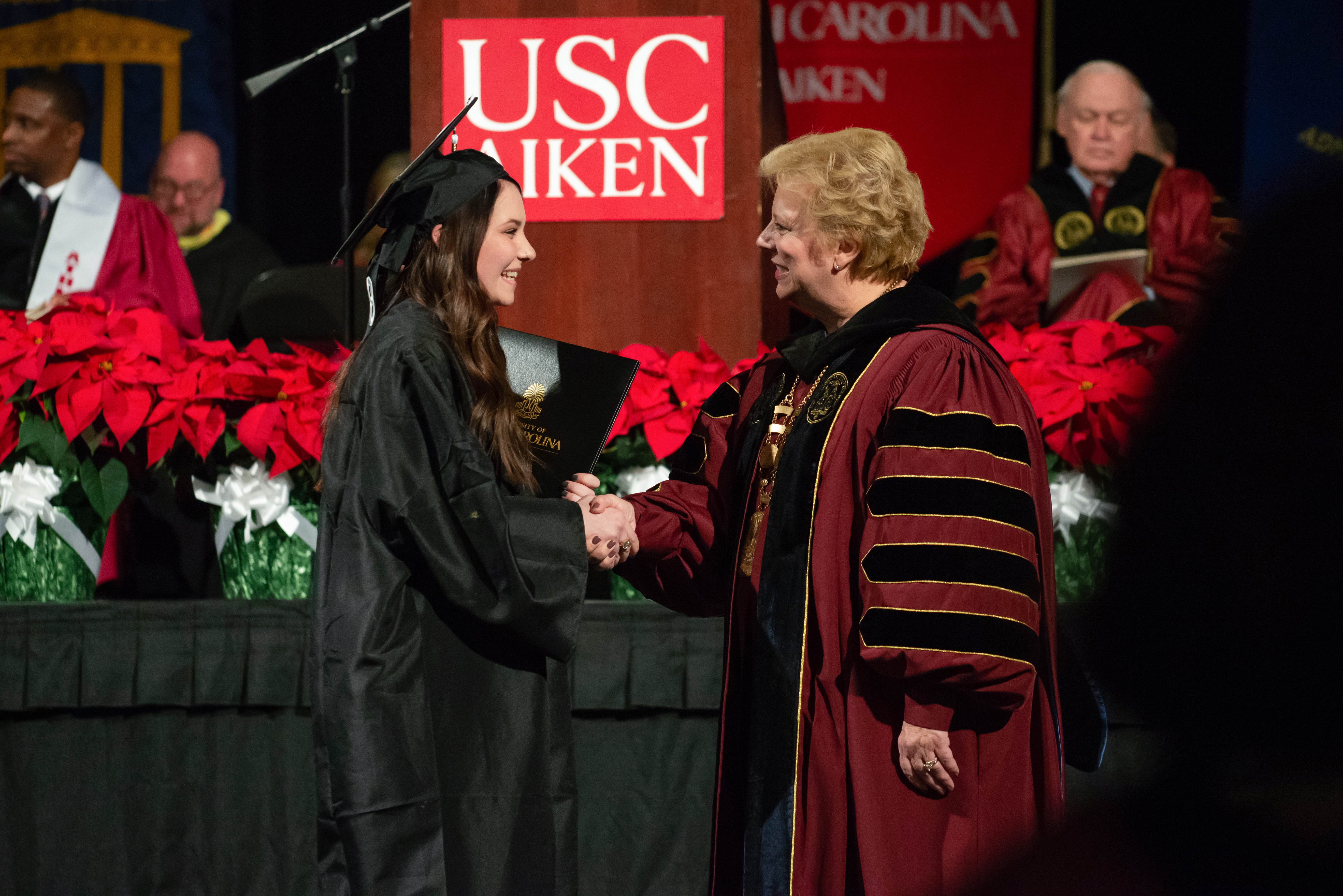 "Your professors and I take pride in knowing you now go forward into our community to build successful careers and compose amazing lives based on the foundations laid by those who love you, strengthened by your early education, and sharply honed at USC Aiken," said Dr. Sandra Jordan, the fourth chancellor of USC Aiken.