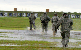 PHOTO 1 CAPTION: Competitors sprint 100 yards between firing points before engaging targets during the combat rifle engagements competitors sprint at the Marksmanship Advisory Council Region IV combat championship June 25 to 28 at Camp Perry Ohio.