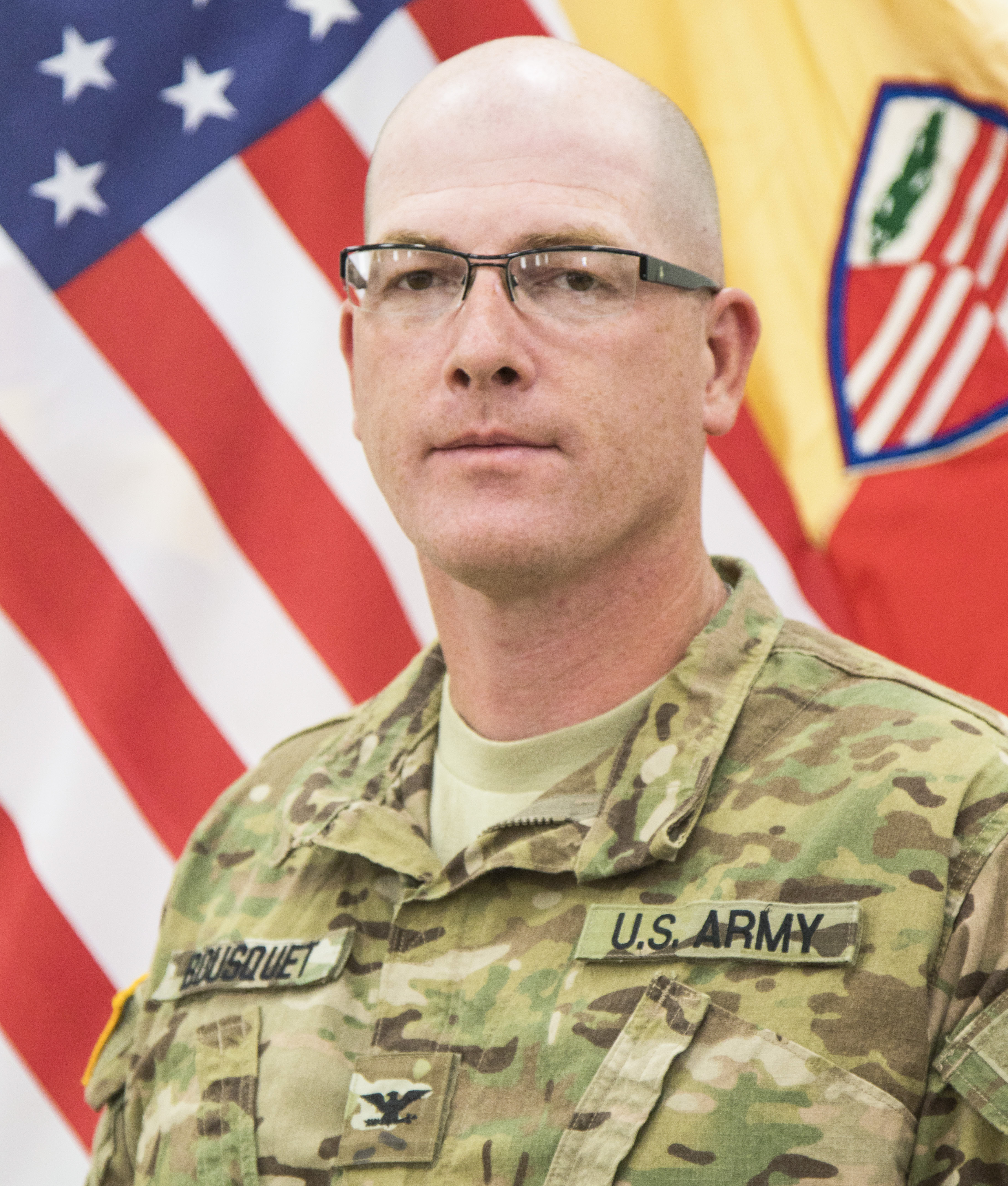 During his service in the New York Army National Guard Bousquet has served as a tank battalion medical platoon leader, tank battalion headquarters company commander, commander of a support company, executive officer and commander of a support battalion, the logistics officer of the 42nd Infantry Division and the Deputy commander of the 369th Sustainment Brigade.